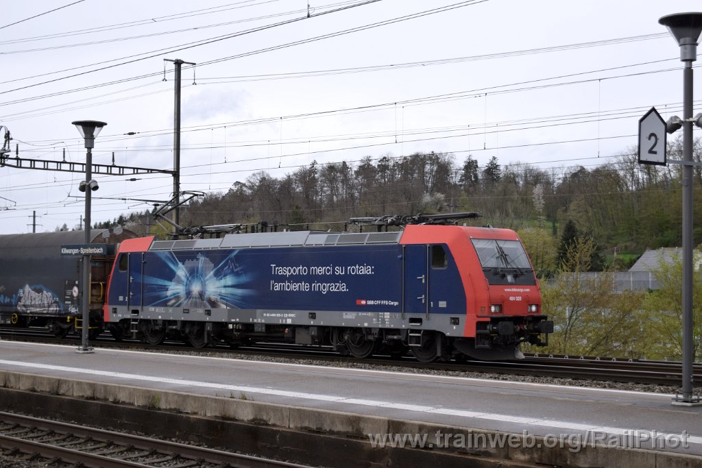 | SBB-CFF Re 484.020-3 "L'ambiente ringrazia" / Killwangen-Spreitenbach 12.4.2023 | 8455-0021-120423.jpg | |