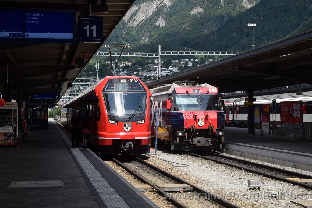 | RhB ABe 4/16 3149 + Ge 4/4''' 646 "Sta.Maria / Val Müstair" / Chur 4.7.2023 | 8686-0037-040723.jpg | |