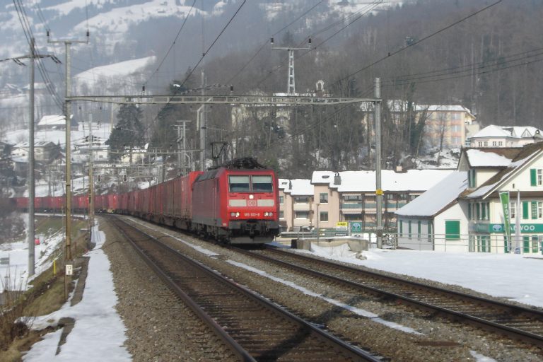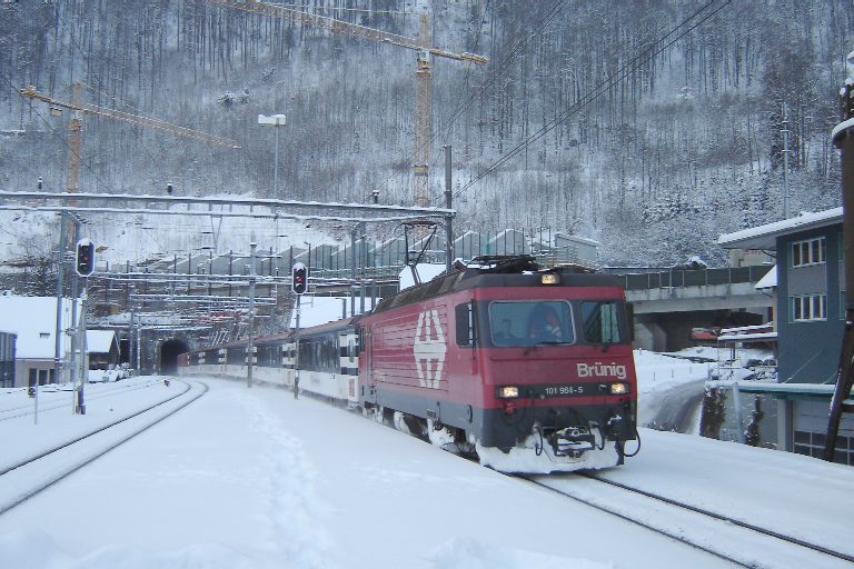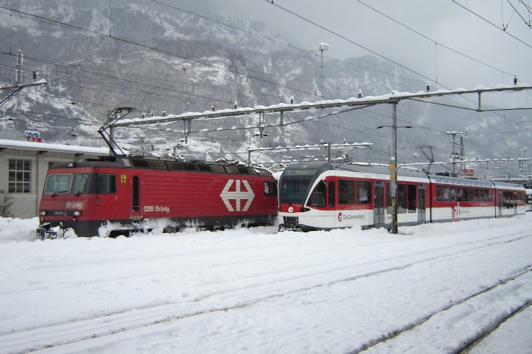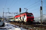 ![]() Gm 4/4 111 "Jumbo", at the engine shed of Stansstad |