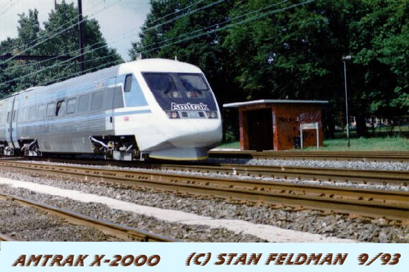 Click here to see the Amtrak X-2000 running north (east) in Metroliner Service. It is passing Tacony Station, Philadelphia Pa. 9/93.