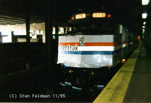 Click here to see Amtrak F-40-PHR #375 (built by EMD in 1988) in The 30th Street Station, Phila. Pa. 11/95.