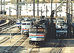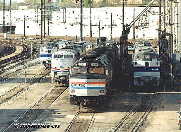 Click here to see Amtrak F-40-PHR #245 (built by EMD in 1977) sitting between Amtrak P-42-DC #22, and P-42 #106. Race Street Engine Terminal, Phila. Pa. 4/98.