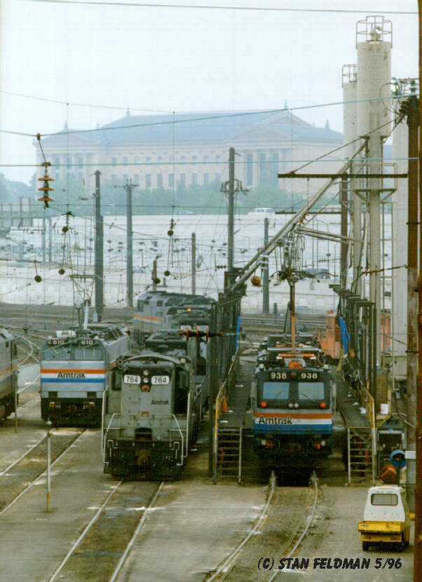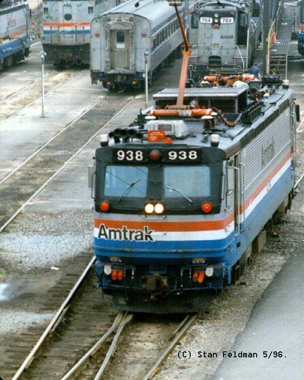 Click here for a good top view of Amtrak AEM-7 #938 heading into 30th Street Station, Phila. Pa., to pick up its train. 5/96