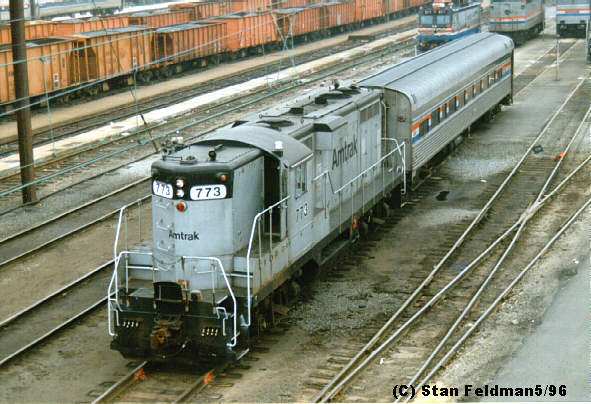 Click here to view Amtrak GP-9 #773 at work in the Penn Coach Yard, 30th Street Station Phila. Pa. 5/96.