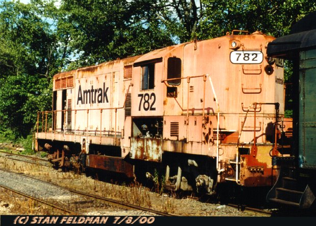 -Click here to see ex-Amtrak,(L&N, NC&StL) GP-7 #782, built by EMD in January 1950. This engine was purchased for parts, by The Black River & Western Railroad and is never run. Ringoes N.J. 7/8/00.