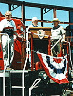 -Click here to see D+H President Paul Gilmore with D+H Senior Engineer Bernie O'Brien, on the nose of CP SD-40-2 #5647. Bernie O'Brien was presented a gold watch in recognition of 50 years of service on The Delaware and Hudson Railway. Steamtown National Historic Site, Scranton Pa. 5/23/98.