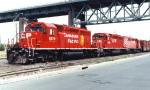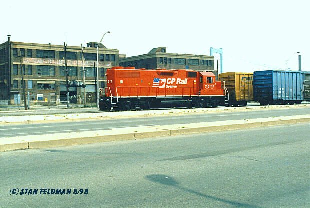 Click here to see a side view of Canadian Pacific GP-38-2 #7311, ( dual flags paint scheme ) at work in The Port of Philadelphia Pa. 5/95.
