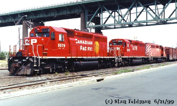 -Click here to see a side view of Canadian Pacific "Golden Beaver", CP SD-40-2 #5579. It is sitting with a train on the Belt Line, Port of Philadelphia Pa. 6/21/99.