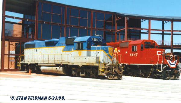 -Click here to see D+H GP-38-2 #7303 & CP SD-40-2 #5647 in the Roundhouse Area near The Visitor Center, at Steamtown National Historic Site, Scranton Pa. They are here with a Delaware & Hudson Railway 175th Anniversary, Office Car Special. 5/23/98.