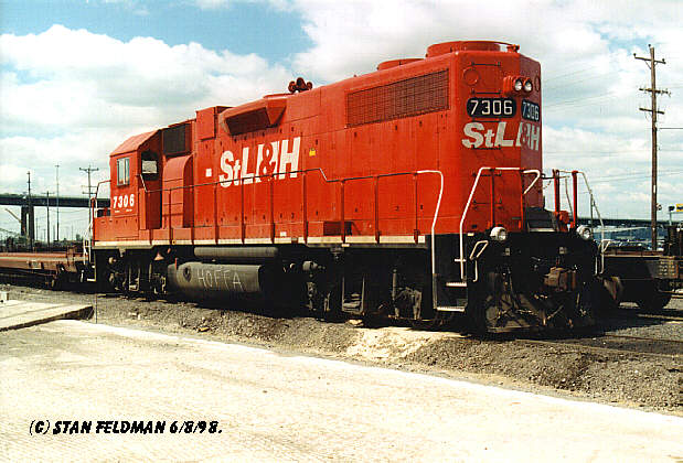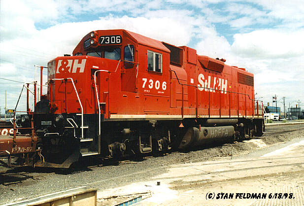 Click here for a front view of StL&H GP-38-2 #7306 working for CP Rail, at the Port Of Phila. Pa. 6/8/98.
