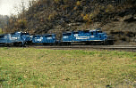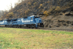 Click here to see Conrail C-40-8 #6040 leading a coal train down through The Horseshoe Curve National Historic Landmark. CR #6040, rated at 4000 HP, was built by GE in 1989. 11/94