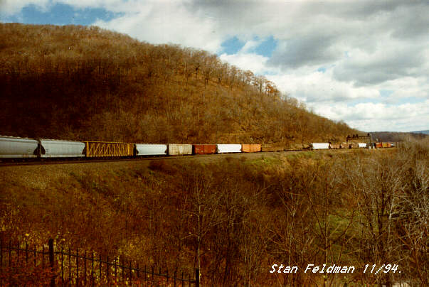 Click here to view just a part, of a long train stretching around The Horseshoe Curve National Historic Landmark,in Altoona Pa. in the fall of 1994. This is a great place to watch trains !
