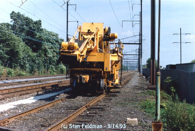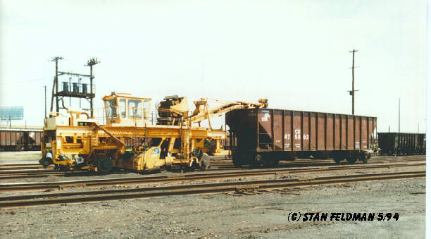 Click here to see a Conrail Yard Cleaner at work in the Greenwich Yard, Phila. Pa. It picks up debris from the track and loads it into the hopper. 5/94