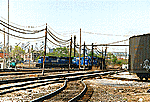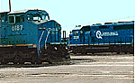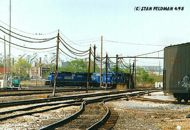 Click here to see train action at the Conrail Greenwich Yard in Phila. Pa. CR C-40-8 #6030 and CR C-40-8W #6161 head in for a train while CR GP-40-2 #3338 and CR GP-15-1 #1644 work the yard. 4/98.