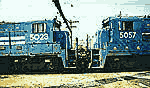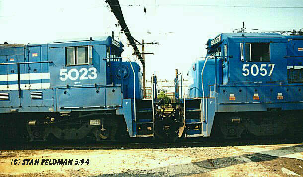 -Click here to see 2 Conrail B-36-7 engines, CR#5023 and CR#5057 nose to nose at Frankford Jct. Phila. Pa. 5/94.