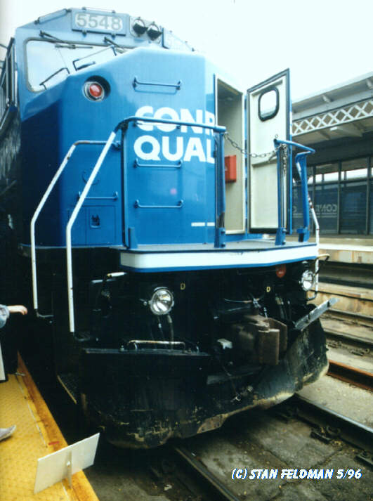 -Click here for a front view of Conrail SD-60M #5548 on display at the Wilmington Del. Amtrak Station. 5/96.