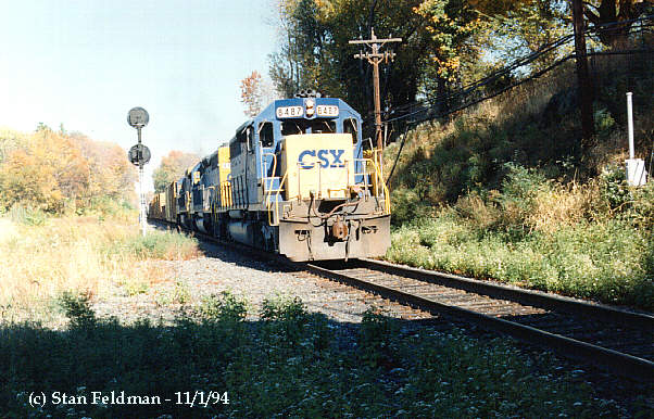 Click here to see CSX SD-40-2 #8487 leading Conrail Train PYSE at Cheltenham Junction, Phila Pa. 11/1/94.