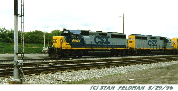 -Click here to see CSX GP-40-2 #6240, built by EMD and rated at 3000 HP. It is leading a light engine move through Eastside Yard, Philadelphia Pennsylvania. 5/29/96.| Search Stan's RailPix ! |