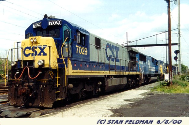 -Click here to see CSX C-30-7 #7029, built by GE and rated at 3000 HP. It is leading train CAO-1 out of Frankford Junction, Philadelphia Pa. after picking up its cars. 6/8/00.