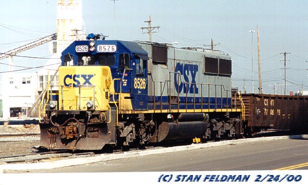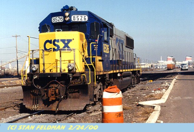 -Click here to see CSX SD-50 #8526 on the Belt Line, at The Port of Philadelphia Pennsylvania. It is being used to move cars from the port to The Greenwich Yard. 2/24/00.