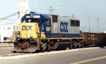 -Click here to see CSX SD-50 #8526 pulling empty gondola cars from Municipal Pier 98, Port of Phila. Pa. Since the Conrail break-up there has been a shortage of 2 axle power, (GP,s SW's) for yard work and locals in this area. It seems like overkill to use a 3500 HP engine for a job that could be done by a 1500 HP engine. 2/24/00.