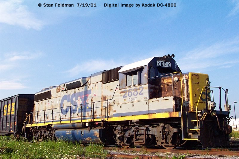 -Click here to see CSX GP-38-2 # 2682, built by EMD in 1976 and rated at 2000 HP. It is seen here in the yard at Lansdale Penna. 7/19/01.