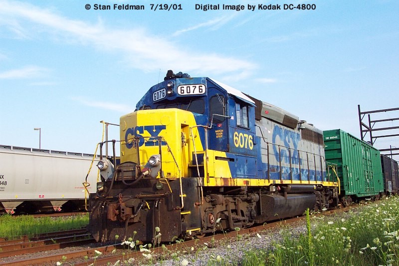 -Click here to see CSX GP-40-2 # 6076, built by EMD in 1974 and rated at 3000 HP. At one time CSX had 343 GP40-2 Locomotives. Lansdale Pa. 7/19/01.