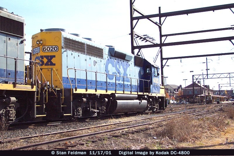 -Click here for a rear view of CSX GP40-2 # 6020 in the yard at Lansdale Pa. In the background is the Septa Regional Rail R-5 Line, lansdale Station. 11/17/01.
