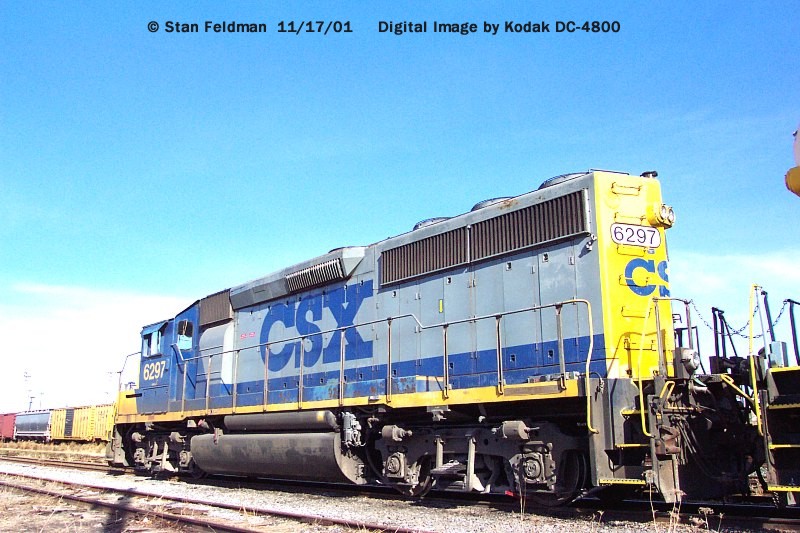 -Click here for a front view of CSX GP-40-2 # 6020, built by EMD in 1973 and rated at 3000 HP. It is seen in the yard at Lansdale Pa. with CSX # 6297. 11/17/01.