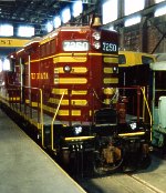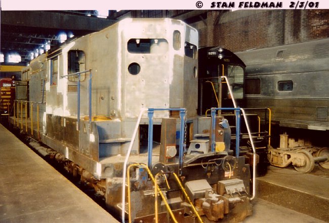 Click here to see stripped Juniata Terminal (JTFS) GP-10 #7251, a work in progress. This is former Conrail GP-10 #7587, built by EMD in 1959, remanufactured by Conrail in 1979, and is rated at 1850 HP. Juniata Terminal Company, Philadelphia Pennsylvania, 2/3/01.