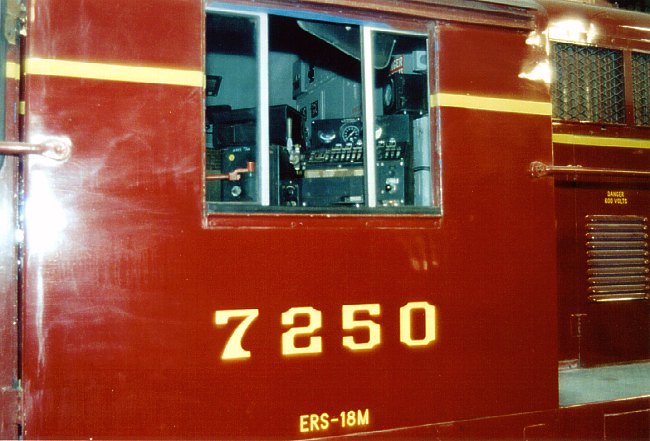 Click here for a look inside the cab of Juniata Terminal (JTFS) GP-10 #7250. Visible are the Control Stand, brake handle and various gauges. Juniata Terminal Company, Phila. Pa. 2/3/01.