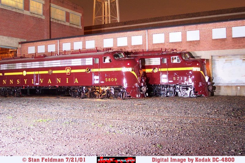 A night photo shoot with PRR #5711 and PRR #5809 was held on July 21 2001, at The Juniata Terminal Company.