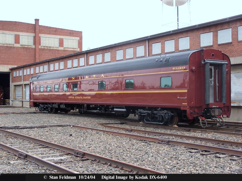 Click here for a side view of the newly restored "Little Juniata Rapids" Juniata Pullman Car. This is a former Southern Pacific Railroad ( Amtrak ) car. 10/24/2004.| Search Stan's RailPix ! |