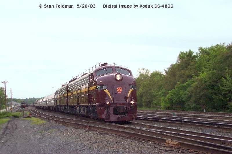 Click here to see restored Juniata Terminal PRR E-8a #5711 leading The American Shortline Railroad Association Special through Abrams Yard, on the Norkfolk Southern Harrisburg Line. This special train ran from Philadelphia's 30th Street Station to Valley Forge, Pa. 5/20/03.
