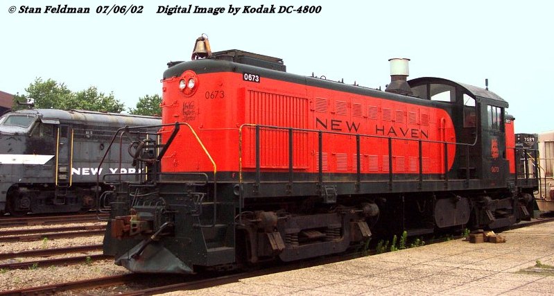 Click here to see New Haven RS-1 # 0673, built by ALCO in 1948. This 1000 HP road switcher was purchased from The Green Mountain Railroad in 1995 and arrived at The Danbury Railway Museum on 1/19/96. Danbury Railway Museum, Danbury Conn. 7/6/02.| Search Stan's RailPix ! |