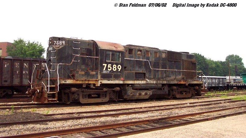 Click here to see former Conrail RS-11 #7589, built by ALCO in 1956 and rated at 1800 HP. This road switching locomotive, ex Penn Central # 7662, exx New Haven # 1402, was acquired from Martin Marietta and arrived at The Danbury Railway Museum on 6/20/01. Danbury Railway Museum, Danbury Conn. 7/6/02.