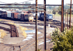-Click below for a "telephoto" front end shot of Long Island Railroad (LIRR) Alco Cab Unit FA2M #605( ex L&N #310 ). It is sitting with some Conrail engines the CSX (Conrail) Greenwich Yard in Philadelphia Pa. Note the unfinished trackwork in the bottom left of the picture. 9/25/99.