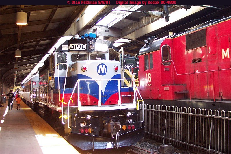 -Click here to see a digital image of Metro-North Commuter Railroad GP-40PH-2 # 4190. This locomotive was built by EMD in 1969 as Conrail GP-40 # 3273 (3000 HP) and was rebuilt for Metro North by Conrail in 1992. NJT Try Transit Festival, Hoboken (NJ) Terminal. 9/8/01.