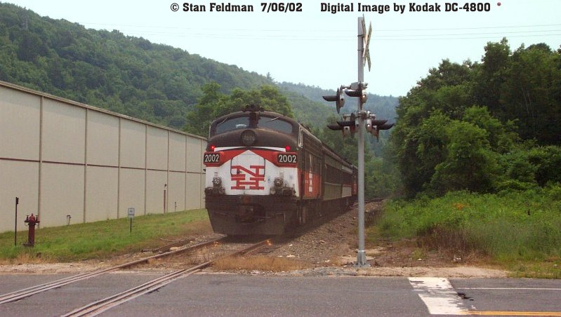 -Click here to see New Haven (MTA) FL-9 # 2002 on the rear of the 1:00 pm Naugatuck Railroad excursion train from The Thomaston Connecticut Station on Saturday, 7/6/02.