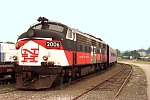 -Click here to see New Haven (MTA) FL-9-M # 2026. This engine was rebuilt by Morrison Knudsen and is owned by CDOT. Danbury Connecticut. 7/6/02.