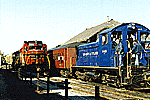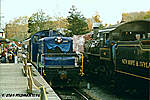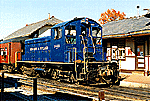 Click here to see New Hope & Ivyland Railroad GP-30 #2198 doing yard work as the crew of New Hope & Ivyland Railroad SW-1 #9423 watches. New Hope Station, New Hope Pa. 10/29/97.