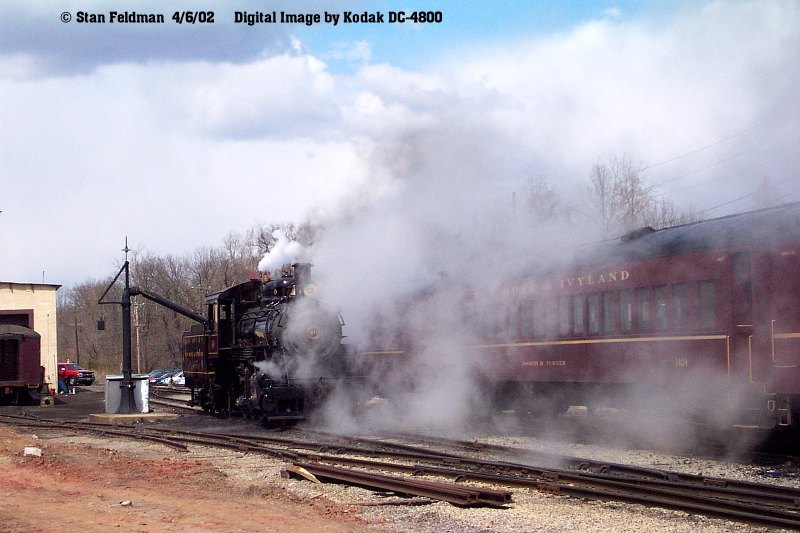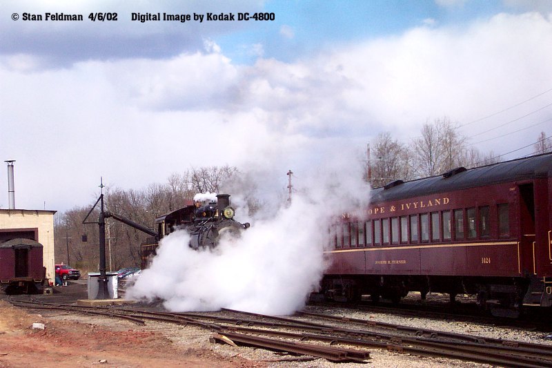 The pictures on this page are from The First Annual New Hope & Ivyland Railroad Railfan Weekend, April 6th and 7th , 2002. The NH&I railroad operated steam and double headed diesels on vintage and modern mixed freight and passenger trains from the New Hope Pa. Station. Click on the thumbnail for a larger image.