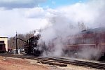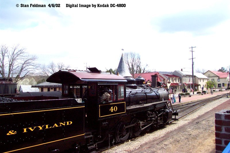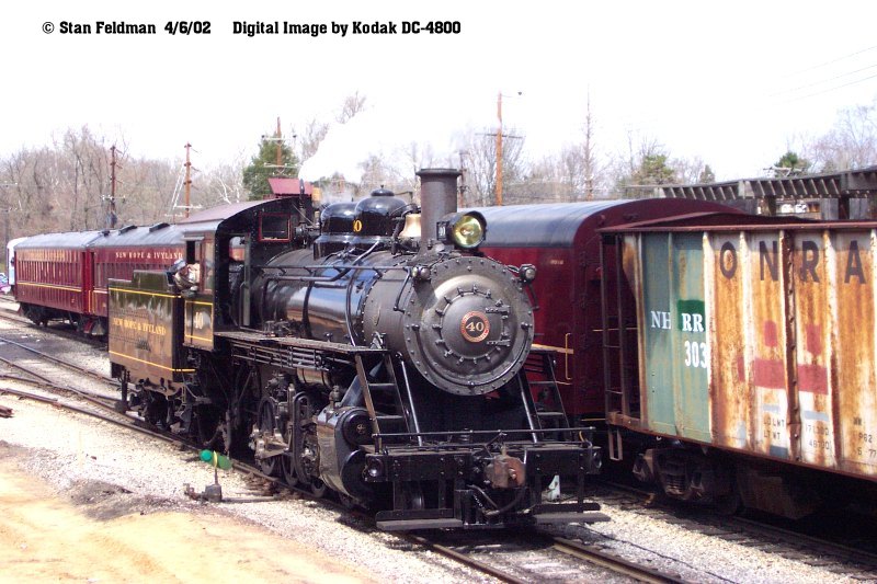 3 Digital Images of New Hope & Ivyland Railroad 2-8-0 #40 emerging from a cloud of steam and moving up to the front of the vintage mixed train. New Hope & Ivyland Railroad Railfan Weekend. 4/6/02.
