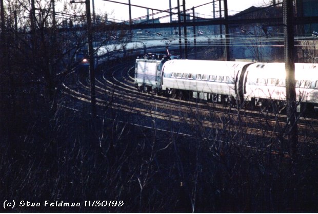 -Click here to see 2 Amtrak "Thanksgiving Express Trains" passing on the curve at Frankford Junction, Phila. Pa. Sunset, 11/30/98.