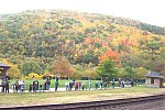3 Digital Images taken from the interior of The Kitchi Gammi Club Car, as it rounds The Horseshoe Curve National Historic Landmark in Altoona Pa. The curve is 2,375 Feet long, and was opened for service by the Pennsylvania Railroad on Feb.15,1854. The tracks rise 122 feet from one extremity of the curve to the other on a grade of nearly two percent. 10/6/01.