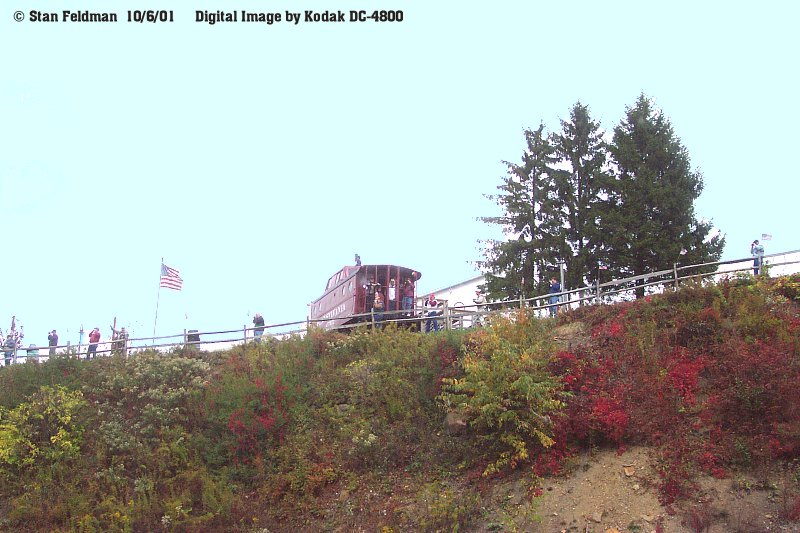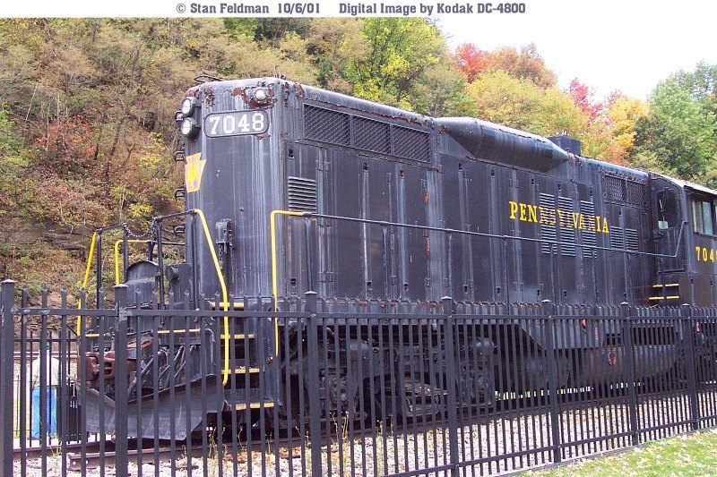 3 Digital images showing one Funicular Car, and Pennsylvania Railroad GP-9 # 7048, at The Horseshoe Curve National Historic Landmark. The Funicular was part of $6 million in new facilities installed in 1992. PRR GP9 ,class EFS17m #7048 , was built by EMD in 1955. Altoona Pa. 10/6/01.