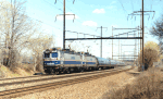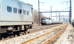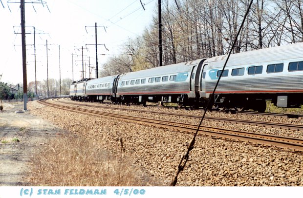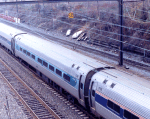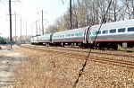-Click here to see Amtrak Acela Regional Train #131 heading into the reverse curve between MP 74 and MP 75, south (west) of Torresdale Station. This Acela Regional Train has cars from The Capstone 2001 upgrade program. 4/5/00.