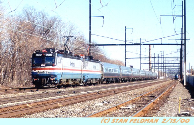 -Click here to see Amtrak Acela Regional Train #131 passing Torresdale Station, Philadelphia Pa. In the lead are 2 "Northeast Direct" (electric) AEM-7s, #909 and #911. Ridership continues to grow on these popular trains. 4/5/00.