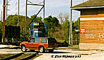 With a puff of blue brake-shoe smoke, the truck, loaded with steel, slowed enough to weave past lowered warning gates at the crossing without hitting them. From his engineer's seat, Mr. Gilsdorf could read the company name on the truck's cab door.