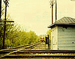 Click here to see a Septa Budd Company, RDC Newtown Train at Ayres Jct. on the West Trenton Line. The crossing was not in automatic operation due to vandalism. 5/82.